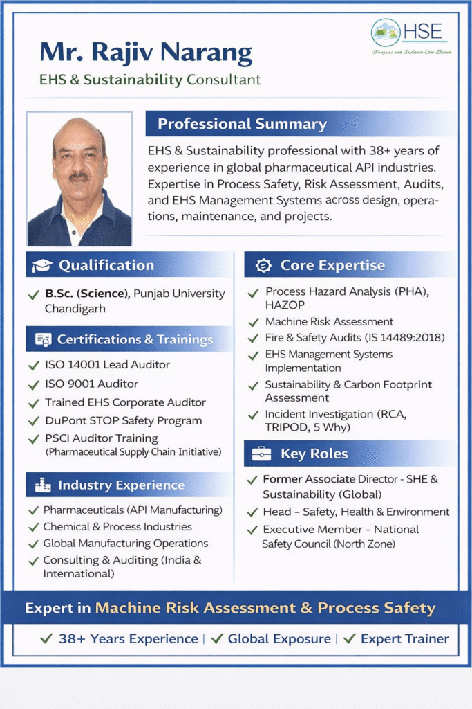 Faculty: Mr. Rajiv Narang.(EHS & Sustainability professional with 38+ years’ experience from leading Pharmaceuticals API MNC